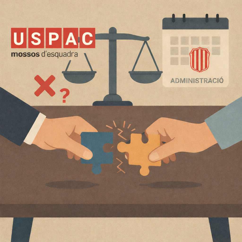 El proper dijous ha de tenir lloc la darrera i definitiva reunió amb l’objectiu de presentar la proposta final. Des de USPAC-USCOP, i en els termes en què està redactat actualment l’Acord, exigirem que durant l’any 2026 també s’iniciï l’elaboració del Pla de Carrera Professional per als agents del Cos de Mossos d’Esquadra.
